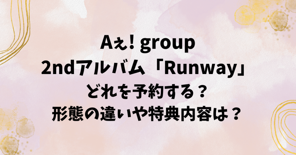 Aぇ! groupの2ndアルバム「Runway」の発売が決定しました! 今回のアルバムは初回盤や通常盤など、形態が3種類あり、それぞれ内容が盛りだくさんということもあって、どれを買うか迷う方も多いのではないでしょうか。 また、予約方法やお得に買えるショップも知りたいですよね? そこで、Aぇ! group2ndアルバム「Runway」の形態ごとの違いや、販売店の情報などまとめましたので、ぜひ最後まで読んでいってください! \ライブツアー2026「Runway」についてはこちら!/ Aぇ! group2ndアルバム「Runway」発売決定! h... -